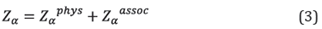where Zα phys is the contribution to the compressibility factor of the cubic equation of state, and Zα assoc is the contribution to the compressibility factor of the association theory. The associative term is given by: