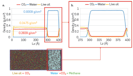 ) in 2015, to determine the phase behavior of a binary, ternary, and multicomponent CO2/hydrocarbon system. These systems include CO2/n-hexadecane, CO2/n-butane/n-decane, and CO2/synthetic oil. The SAFT-y model turns out to be a good candidate to simulate the phase behavior of light oils, but it can be improved for more complex systems. Molecular simulation can provide quantitative calculations of the phase behavior of petroleum mixtures when data are limited or unavailable, thereby reducing the cost and time required to fit equations of state for compositional reservoir simulators. This modeling type has succeeded in numerous industrial applications to predict phase behavior for a wide spectrum of scenarios such as vapor-liquid (VL), liquid-liquid (LL) and vapor-liquid-liquid (VLL)(Avendaño et al., 2011Avendaño, C., Lafitte, T., Galindo, A., Adjiman, C. S., Jackson, G., & Müller, E. A. (2011). SAFT-H force field for the simulation of molecular fluids. 1. A single-site coarse grained model of carbon dioxide. Journal of Physical Chemistry B, 115(38), 11154-11169. https://doi.org/10.1021/jp204908d
