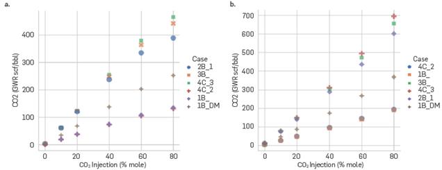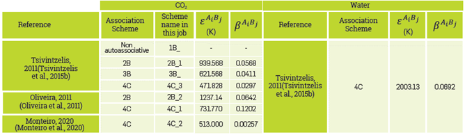 Association schemes 4C_1 and 2B_2 presented thermodynamic problems for the calculation of properties such as solubility and saturation pressures, as they showed unphysically trends in CO2 injection processes. However, it is possible to adjust the volumes and association energies of the schemes to properly calculate the phase behavior.