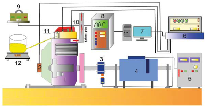 The engine tests were conducted with a single-cylinder diesel powered engine operating at speeds of 1500,1800,2400,3000, and 3600 rpm, with a total engine load of 10 Nm. The specific features of the tested engine are given in Table 2.