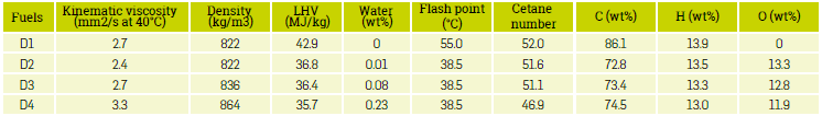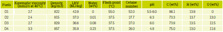 ). PO typically has lower energy density and high viscosity, which negatively impacts engine performance and fuel atomization.