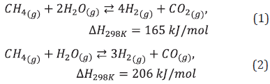 ). The SMR process consists of causing a methane/steam mixture to react by using a catalyst, usually Ni on alumina (Soloviev et al., 2018Soloviev, S. O., Gubareni, I. V., & Orlyk, S. M. (2018). Oxidative reforming of methane on structured nickel- alumina catalysts: A review. Theoretical and Experimental Chemistry, 54, 293-315. https://doi.org/10.1007/s11237- 018-9575-5