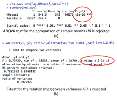 ). Also, the database was analyzed with the kmeans clustering method and the silhouette coefficient for the identification of operating modes representative of the unit. The different performances in H2 generation obtained with the identified operating modes were validated by means of ANOVA and F-tests, taking as H0: the equality between means and the ratio between variances equal to unity, respectively (Ewens & Brumberg, 2023Ewens, W. J., & Brumberg, K. (2023). Introductory Statistics for Data Analysis. Springer Nature. https://doi.org/10.1007/978-3-031-28189-1