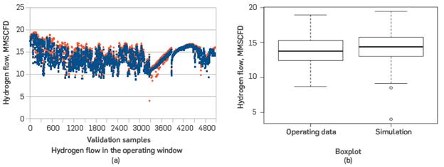, developed an empirical model for online energy optimization of the SMR process. The model predicts the temperature distribution in the furnace based on fuel flow and calibration by infrared camera temperature readings. Likewise, the model was validated with measured data from an operating sample without presenting a statistical analysis. Kumar et al. stated that the application of the empirical model called EC-MR led to a 44% reduction in the non-uniformity of temperature distribution in a commercial furnace. These same authors (Kumar et al., 2017Kumar, A., Edgar, T. F., & Baldea, M. (2017). Multi-resolution model of an industrial hydrogen plant for plantwide operational optimization with non-uniform steam-methane reformer temperature field. Computers & Chemical Engineering, 107, 271-283. https://doi.org/10.1016/j.compchemeng.2017.02.040