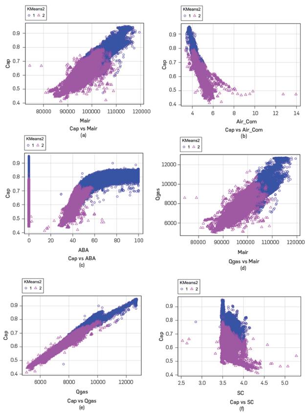 The kmeans algorithm is a cluster identification method that can be used for different purposes such as definition of operational states in industrial processes (Lund & Ma, 2021Lund, B., & Ma, J. (2021). A review of cluster analysis techniques and their uses in library and information science research:k-meansandk-medoidsclustering. Performance Measurement and Metrics, 22(3), 161-173. https://doi.org/10.1108/pmm-05-2021-0026