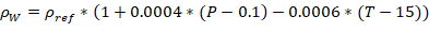 ρw = Water density at P and T conditions of the reservoir (kg/m3)